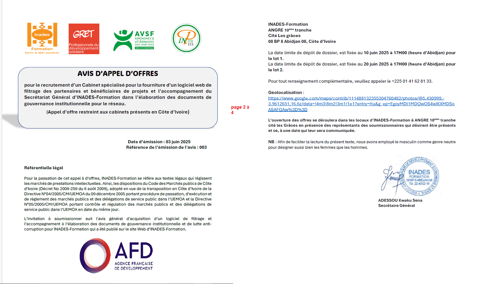 APPEL D’OFFRE: Sélection d’un cabinet spécialisé pour la fourniture d’un logiciel web de filtrage